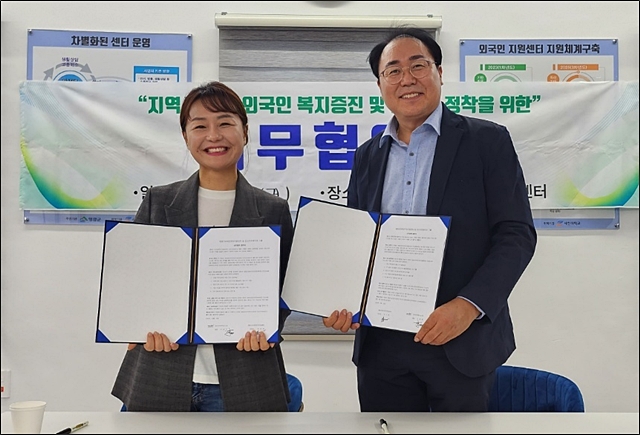 | [¿µ¾Ï±º¿Ü±¹ÀÎÁÖ¹ÎÁö¿ø¼¾ÅÍ(¼¾ÅÍÀå Á¤µÎ¹è)¿Í ÀλêÄÚÆÛ·¹À̼DZ׷ì(ȸÀå ÀÌÇöÁÖ)ÀÌ ¾÷¹«Çù¾àÀ» ü°áÇß´Ù. »çÁø=¿µ¾Ï±º Á¦°ø] |