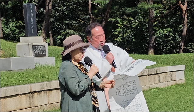 À±¸¸¼ø »ç¹«ÃÑÀåÀº °æÁ¦°¡ ¾î·Á¿î ¿ª°æ¼Ó¿¡¼µµ ÇÑ Ä¡ÀÇ ¿ÀÂ÷µµ ¾ø´Â Çà»çÁغñ¿¡ ³ë°í°¡ ¸¹´Ù´Â Àλ翡 "ÀÇ»çÀÇ ³ªÀÌ 24¼¼, ³ª¹«·Î ¸»Çϸé ä ÇÇÁöµµ ¸øÇÑ Ã¤ ²É ºÀ¿ì¸®·Î Á¶±¹°ú ¹ÎÁ·ÀÇ µ¶¸³À» À§ÇØ ²¨Àú°¡´Â µ¶¸³¿îµ¿ÀÇ ºÒ¾¾¸¦ µÇ»ì¸®½Ã°í, µÎ ¾Æµé¿¡°Ô±îÁö Çǰ¡ ÀÖ°í »À°¡ ÀÖÀ¸¸é ¹Ýµå½Ã Á¶±¹ Á¶¼±À» À§ÇØ ¿ë°¨ÇÑ Åõ»ç°¡ µÇ¶ó´Â ¸» ÇÑ ¸¶µð°¡ À¯¾ð¾Æ´Ñ À¯¾ðÀÌ µÇ¾úµíÀÌ, »À ¼Ó±îÁö ¾Ö±¹À» ¿ÜÄ¡´Â ¿µ¿õ ±×¾ß¸»·Î ´ÔÀÇ Á¤½ÅÀº '¾Ö±¹Á¤½Å', '°è¸ùÁ¤½Å'À̾ú´Ù"¶ó¸ç ´ç´çÇÏ°Ô Çà»çÀåÀ¸·Î ÇâÇß´Ù.