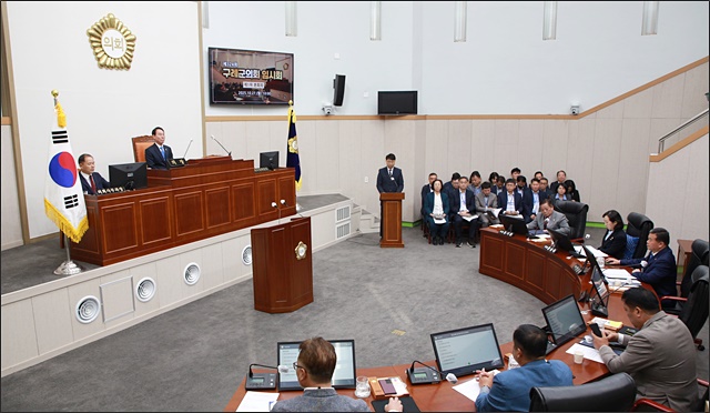 | [À屿¼± ±¸·Ê±ºÀÇȸ ÀÇÀåÀÌ 27ÀÏ Á¦324ȸ ÀÓ½Ãȸ¸¦ ÁøÇàÇϰí ÀÖ´Ù. »çÁø=±¸·Ê±ºÀÇȸ Á¦°ø] |
