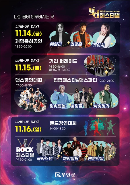 16ÀÏ¿¡´Â Àü±¹ ¹êµå °æ¿¬´ëȸ¿Í ½Ç·ÂÆÄ ¶ôÄ¿ÀÎ ±¹Ä«½ºÅÙ, ü¸®ÇÊÅÍ, ¿£ºÐÀÇÀÏÀÇ °·ÄÇÑ °ø¿¬À¸·Î YD Æä½ºÆ¼¹úÀ» ¸¶¹«¸®ÇÒ ¿¹Á¤ÀÌ´Ù.