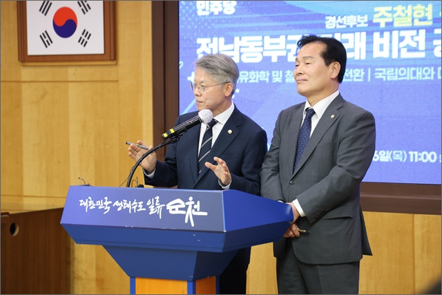µÎ È帴 °øµ¿ ±âÀÚȸ°ß¹®À» ÅëÇØ "Àü³² µ¿ºÎ±Ç »ê¾÷ ´ëÀüȯ°ú °ø°øÀÇ·á Çõ½ÅÀ¸·Î Áö¿ªÀÇ ¹Ì·¡¸¦ ´Ù½Ã ¼³°èÇϰڴÙ"¸ç '»ê¾÷¡¤¿¡³ÊÁö Àüȯ', '°ø°øÀÇ·á ü°è Àç¼³°è', '¹ÝµµÃ¼ »ê¾÷ »ýÅÂ°è ±¸Ãà' µî 3´ë °øµ¿ °úÁ¦¸¦ Á¦½ÃÇß´Ù.