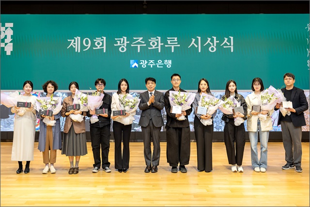 | [(¿ÞÂÊ ¿©¼¸¹øÂ°ºÎÅÍ) ¹Ìµð¾î¾ÆÆ¼½ºÆ® ÀÌÀ̳² ÀÛ°¡, °í±¤¿Ï ±¤ÁÖ±¤¿ª½Ã ÇàÁ¤ºÎ½ÃÀå, Á¤Àϼ± ±¤ÁÖÀºÇàÀå ¹× ¼ö»ó ÀÛ°¡µéÀÌ '±¤ÁÖÈ·ç 10ÀÎÀÇ ÀÛ°¡Àü' °³¸·À» ÃàÇÏÇϰí ÀÖ´Ù. »çÁø=±¤ÁÖÀºÇà] |