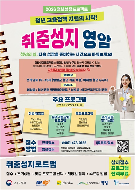 Âü¿© ½ÅûÀº 11¿ù±îÁö ±¸±ÛÆû(QRÄÚµå)À» ÅëÇØ »ó½Ã Á¢¼öÇϸç, ÀÚ¼¼ÇÑ »çÇ×Àº »çȸ°í¿ëÁ¤Ã¥°³¹ß¿ø(061-473-0155)À¸·Î ¹®ÀÇÇÏ¸é µÈ´Ù.